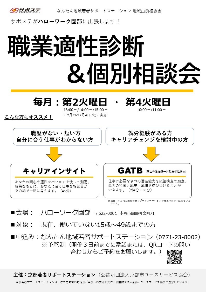 お電話(075-213-0116/京都若者サポートステーション)にて申込みを受付しています。