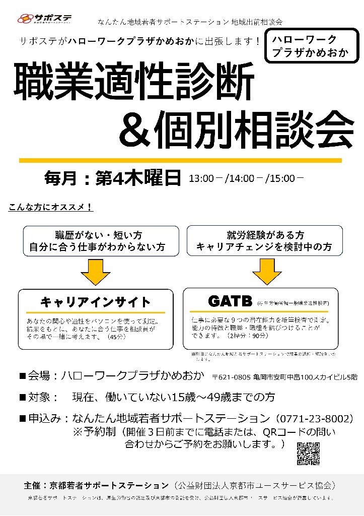 『なんたん地域若者サポートステーション』へ電話。0771-23-8002